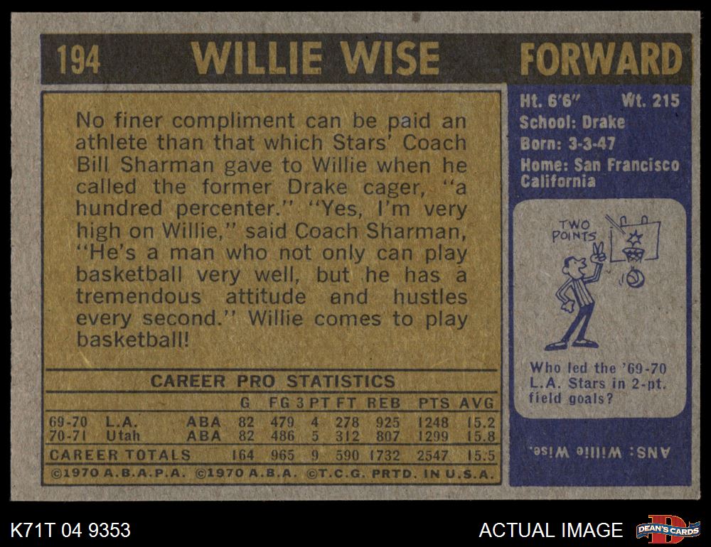1971 Topps #194 Willie Wise 5 - EX