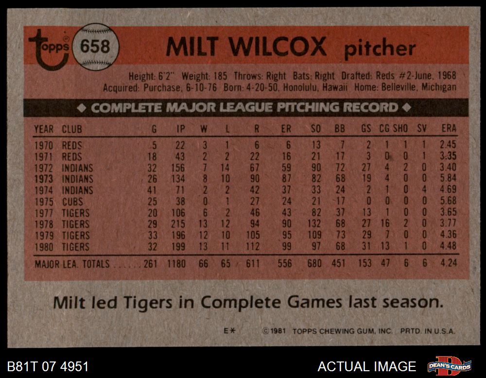 1981 Topps #658 Milt Wilcox 7 - NM