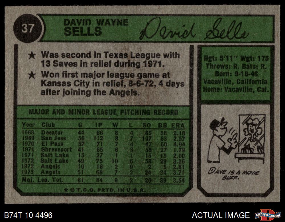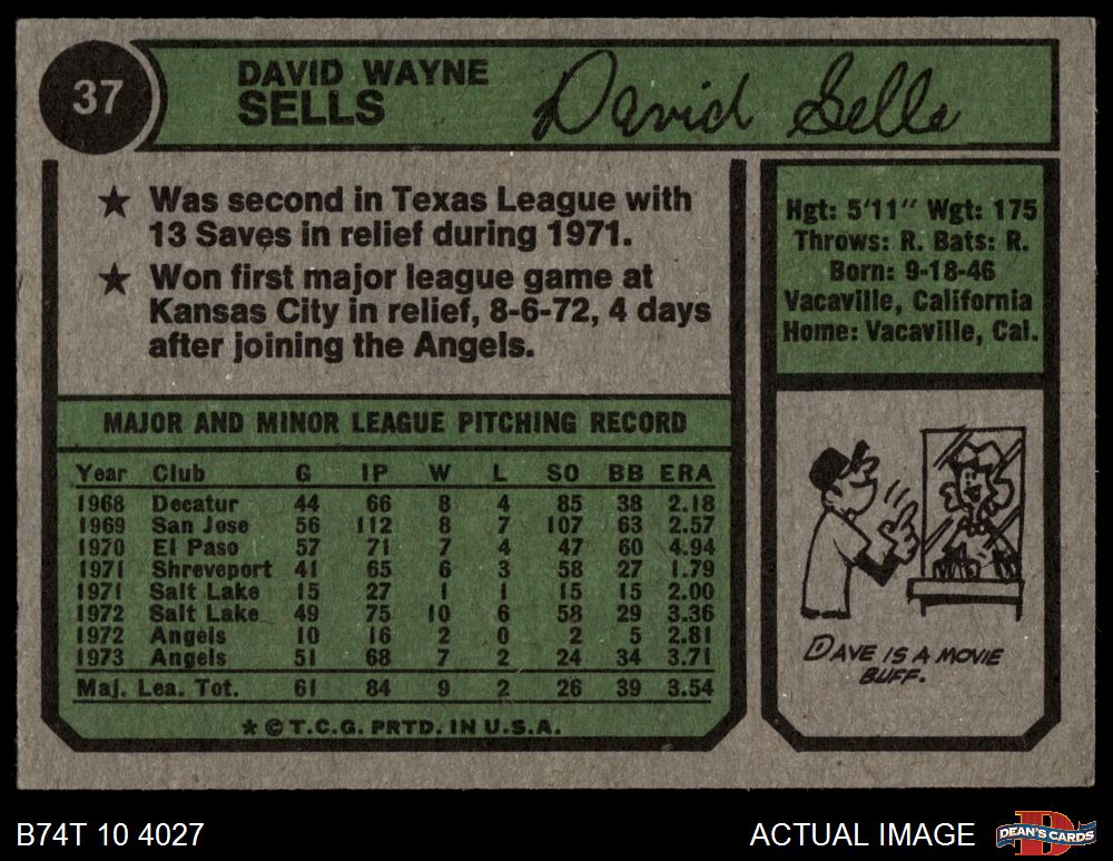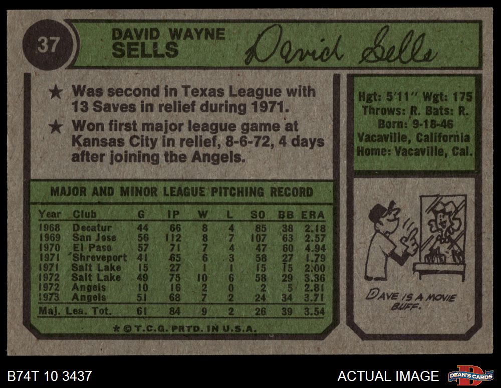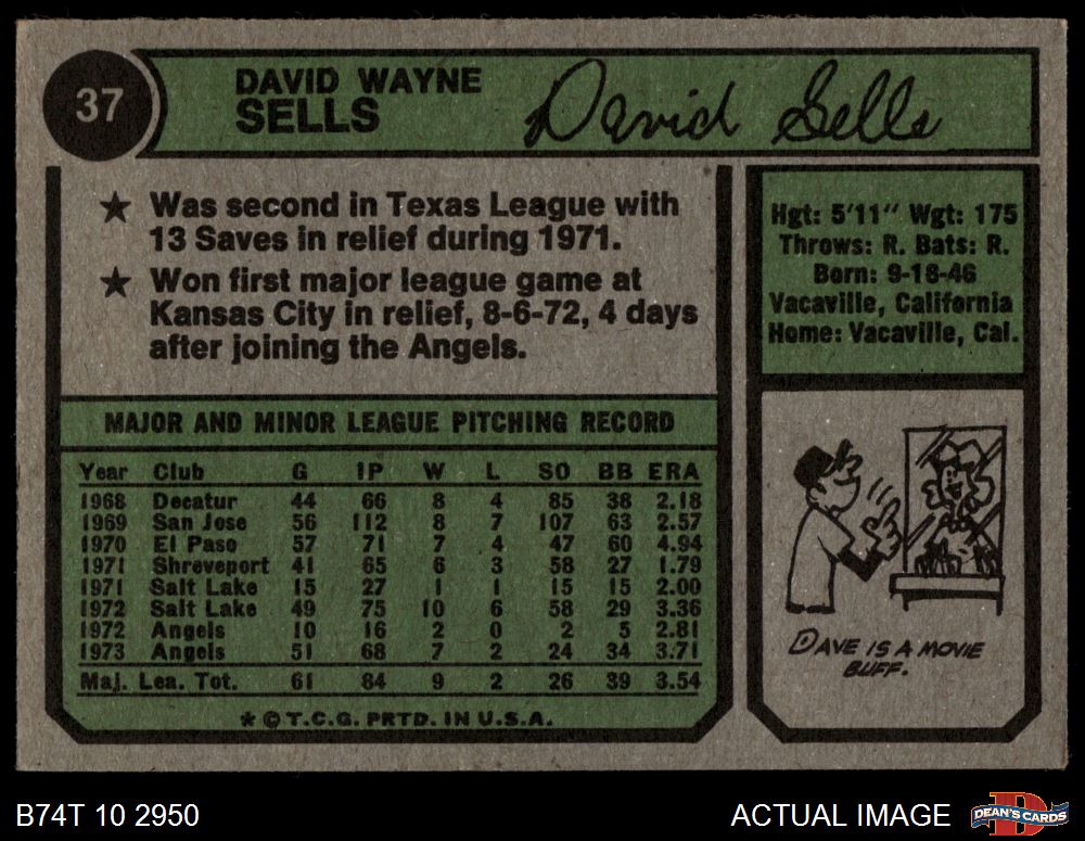 1974 Topps #37 Dave Sells