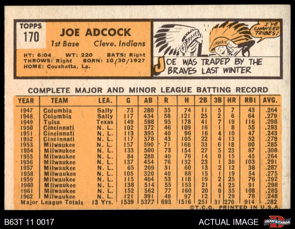 1963 Topps #170 Joe Adcock 4 - VG/EX