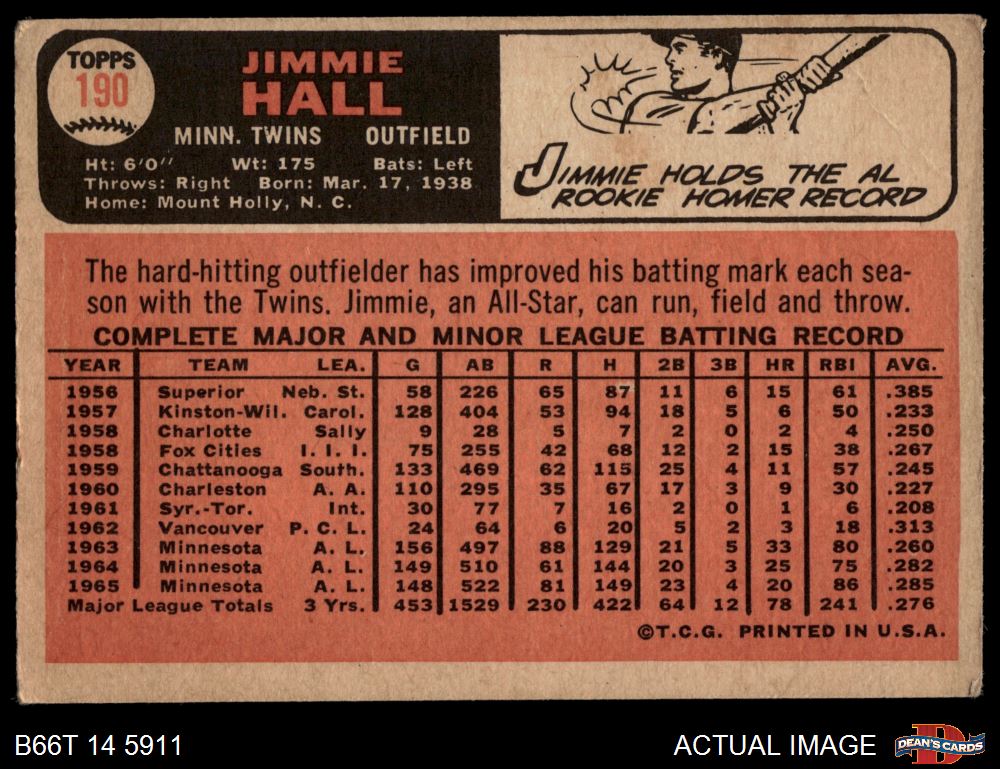 1966 Topps #190 Jimmie Hall