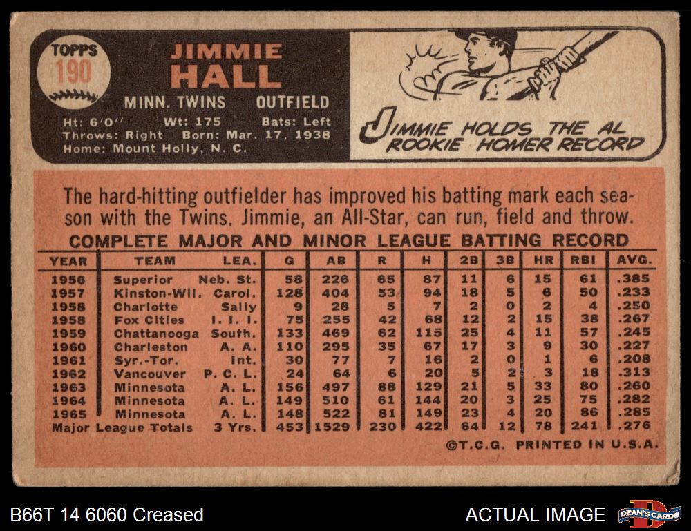1966 Topps #190 Jimmie Hall 2 - GOOD