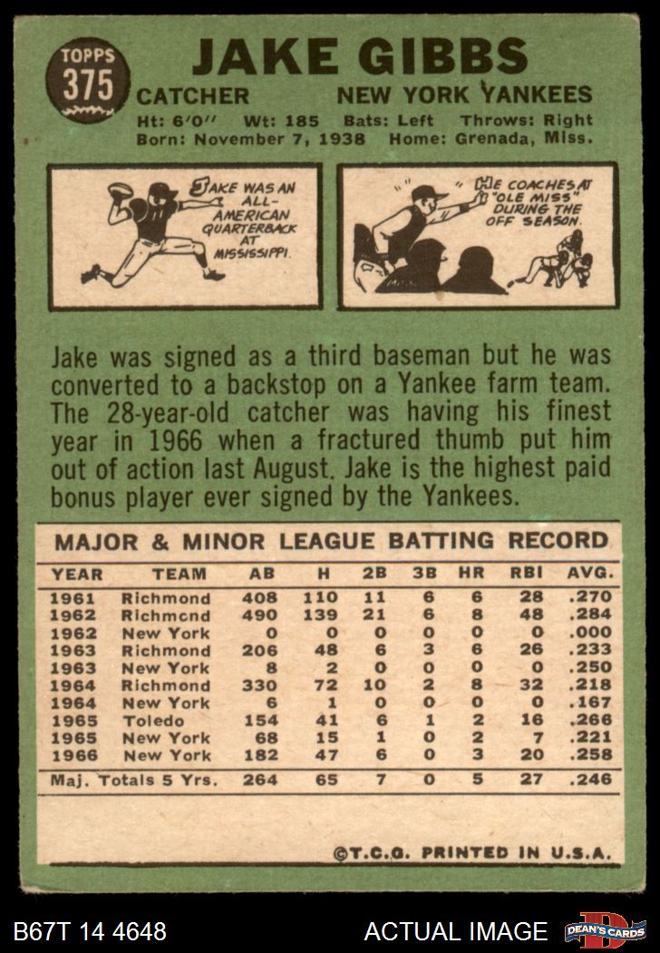 1967 Topps #375 Jake Gibbs 2.5 - GD+