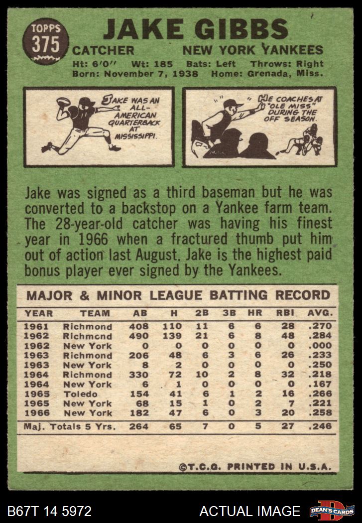 1967 Topps #375 Jake Gibbs 4.5 - VG/EX+