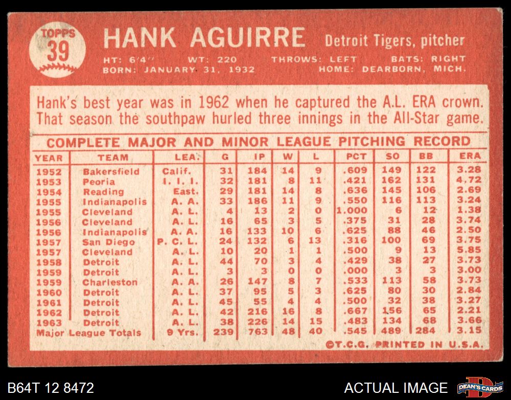 1964 Topps #39 Hank Aguirre 4 - VG/EX