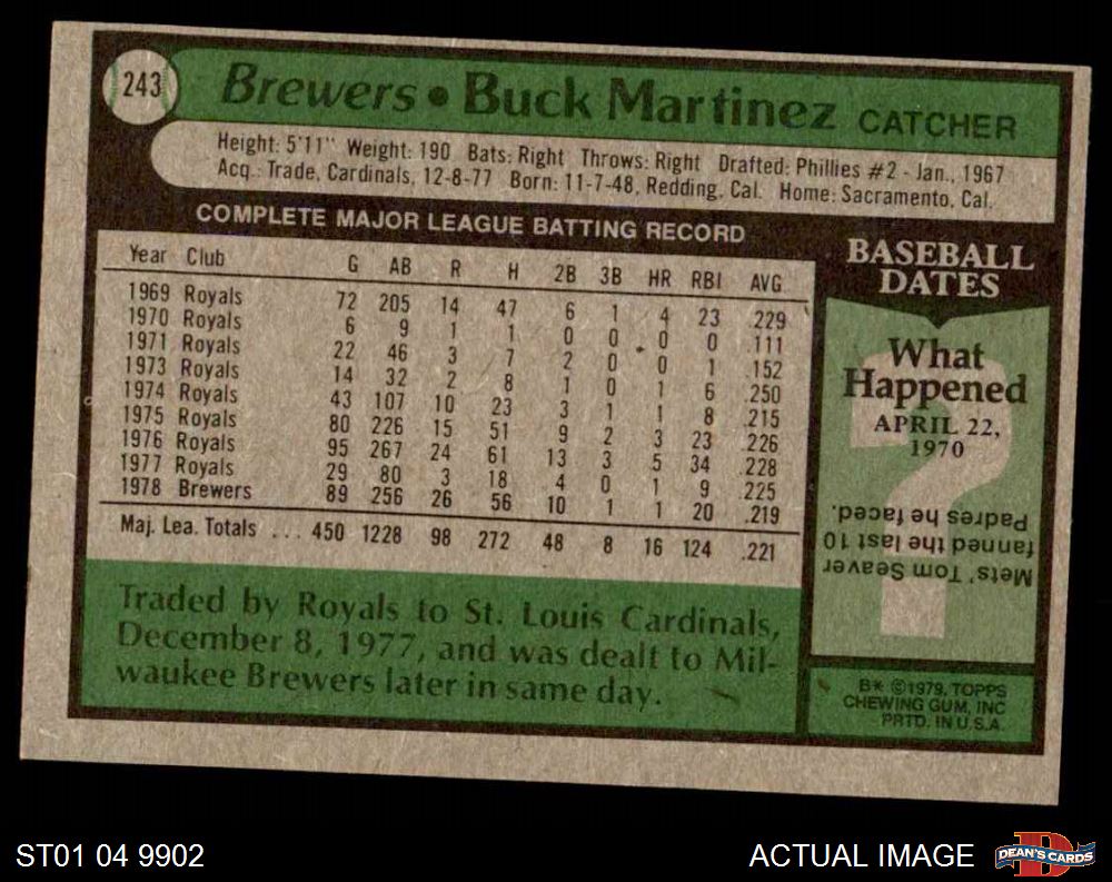 1979 Topps #243 Buck Martinez