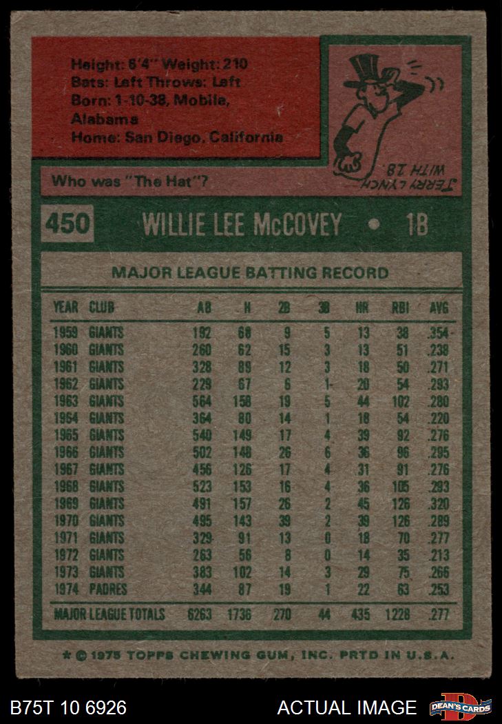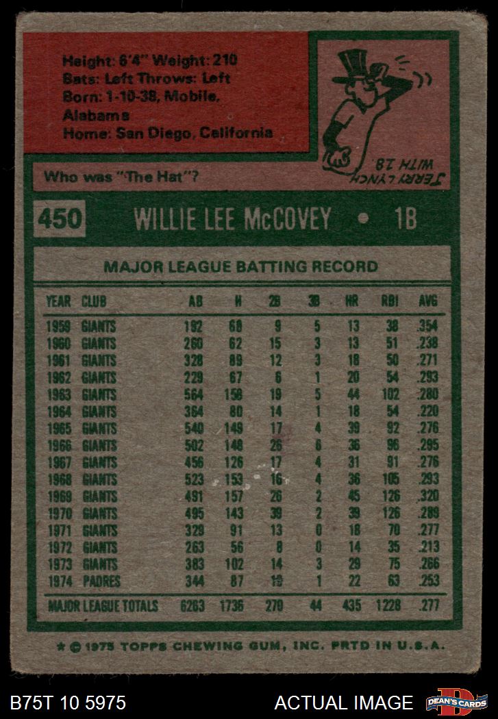1975 Topps #450 Willie McCovey 2 - GOOD