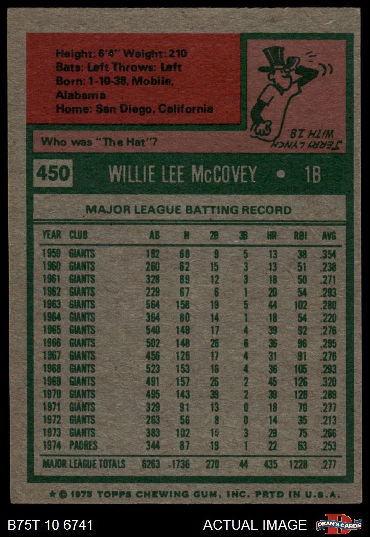1975 Topps #450 Willie McCovey 5 - EX