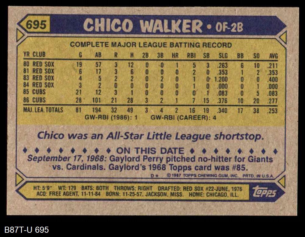 1987 Topps #695 Chico Walker