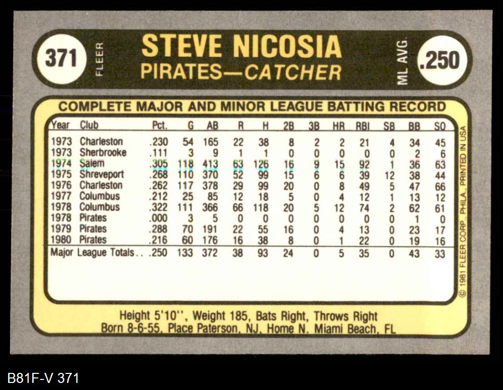 1981 Fleer #371 Steve Nicosia 8 - NM/MT