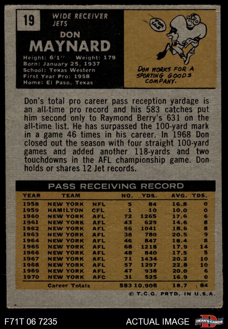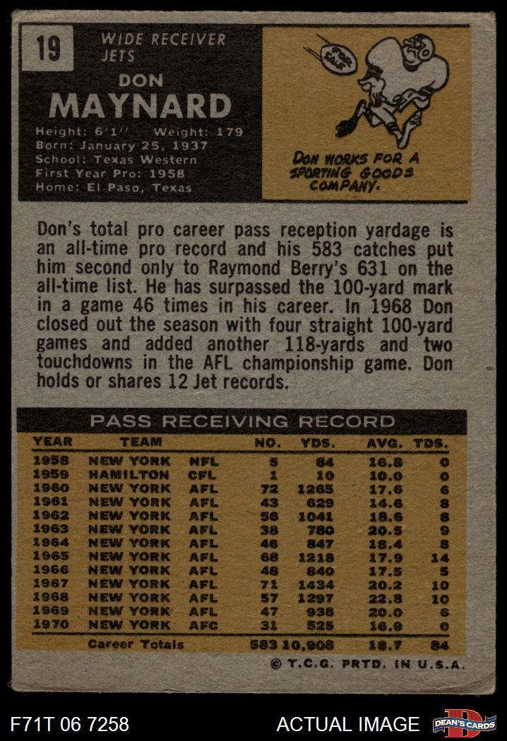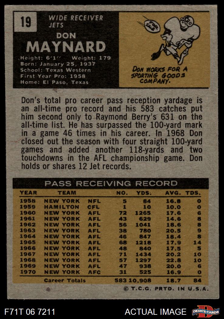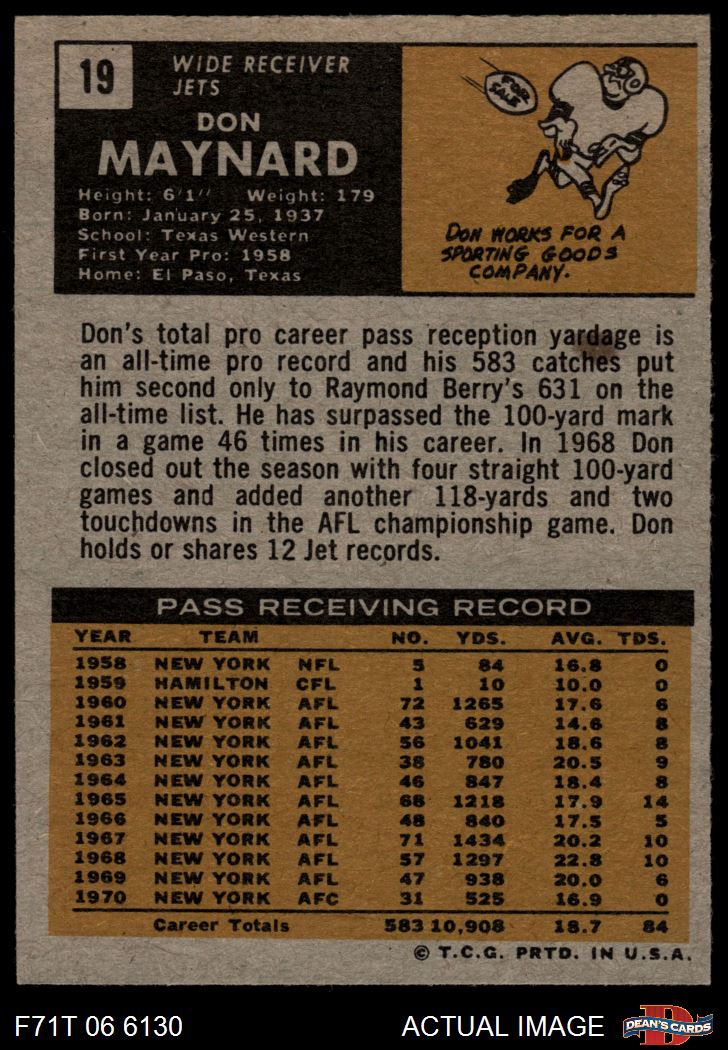 1971 Topps #19 Don Maynard