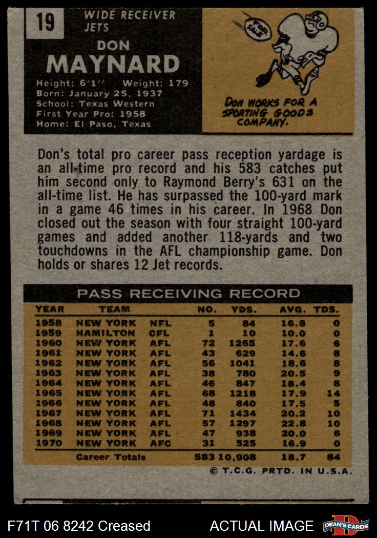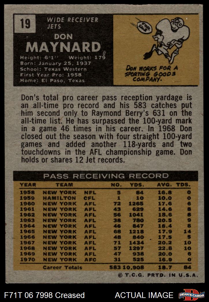 1971 Topps #19 Don Maynard Front Thumbnail
