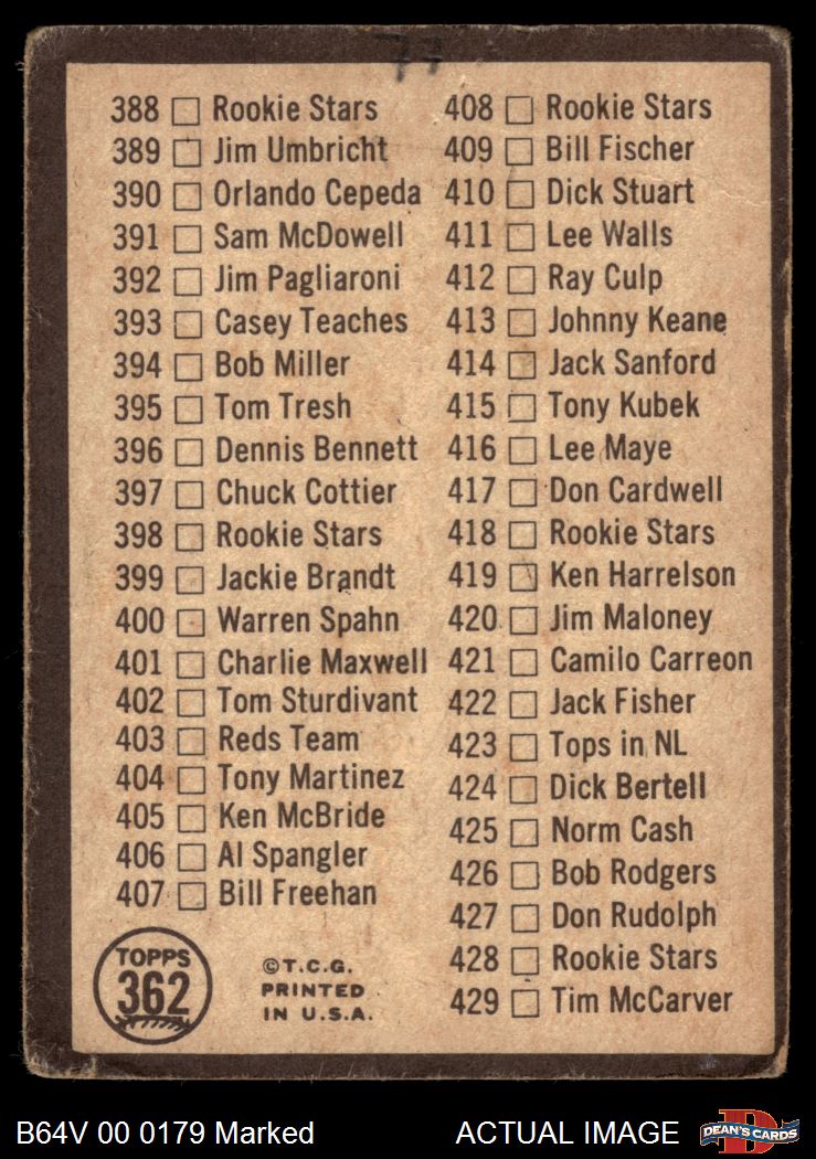 1964 Topps Venezuelan #362 Checklist 5 1 - POOR