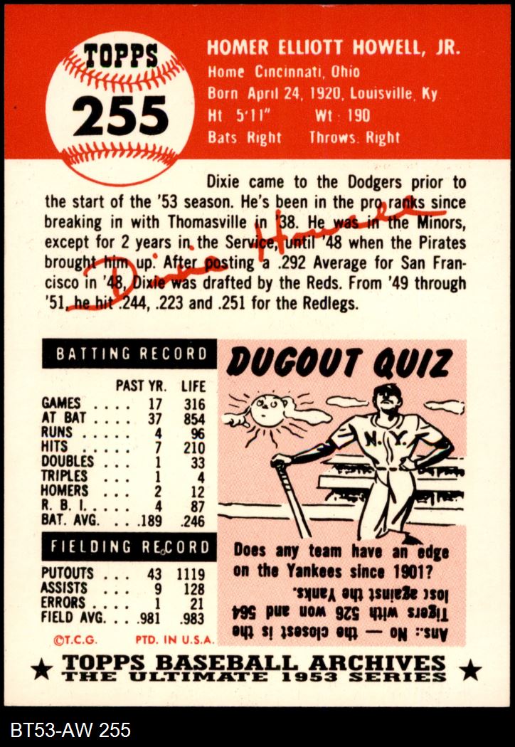 1953 Topps Archives #255 Dixie Howell 8 - NM/MT