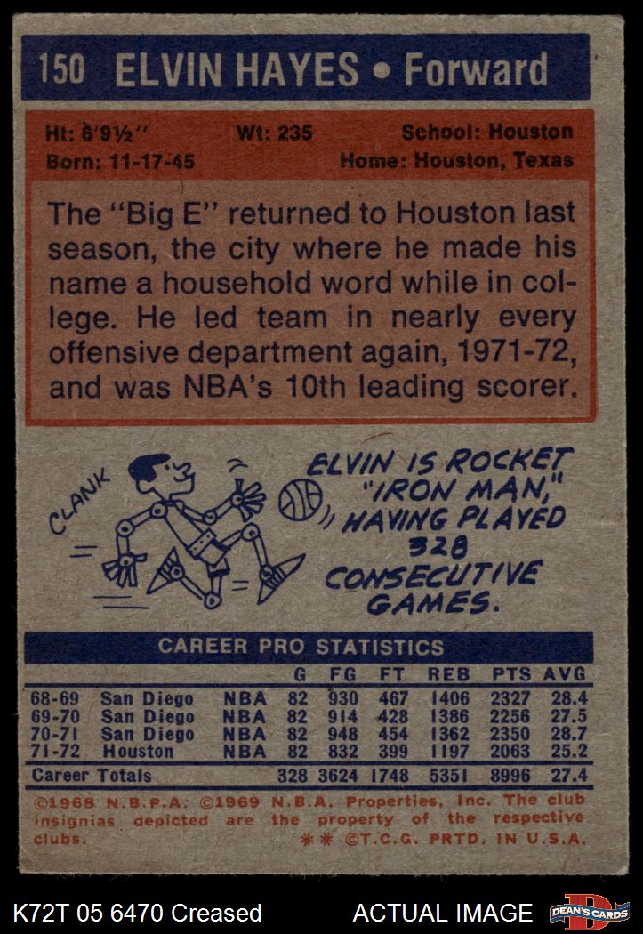 1972 Topps #150 Elvin Hayes 3 - VG