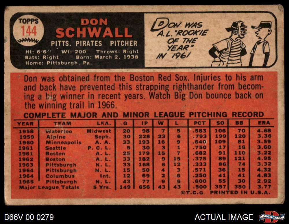 1966 Topps Venezuelan #144 Don Schwall 2 - GOOD