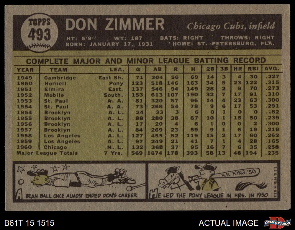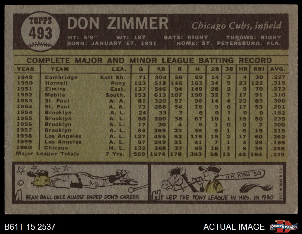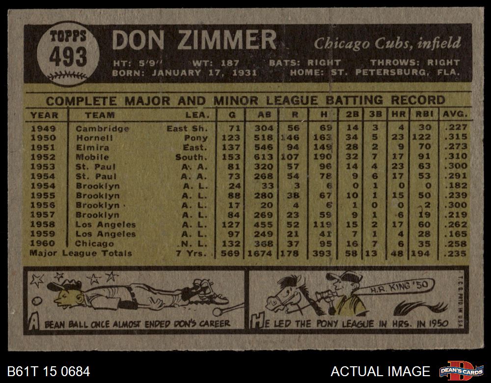 1961 Topps #493 Don Zimmer 4 - VG/EX
