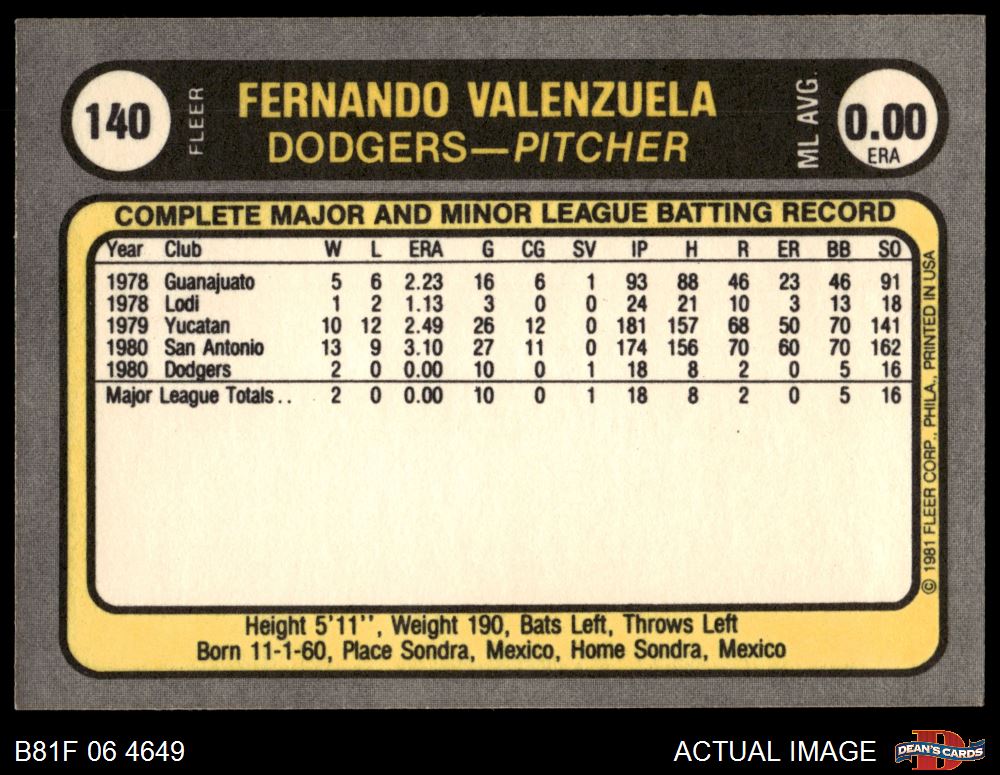 1981 Fleer #140 Name Misspelled Fernand Fernando Valenzuela 8 - NM/MT