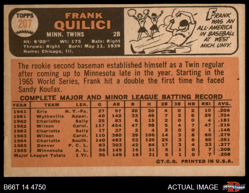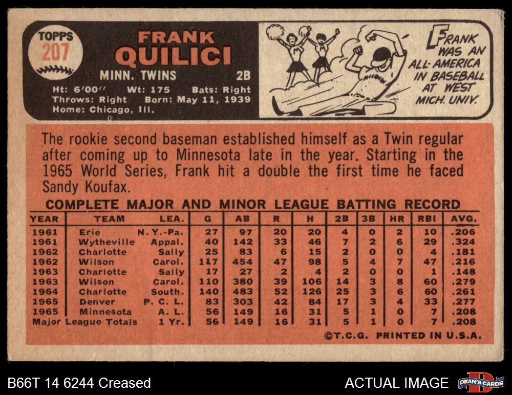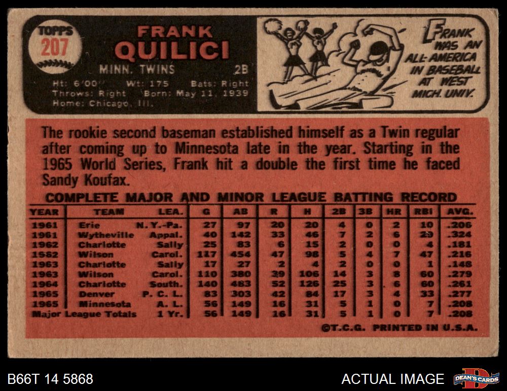 1966 Topps #207 Frank Quilici 2 - GOOD