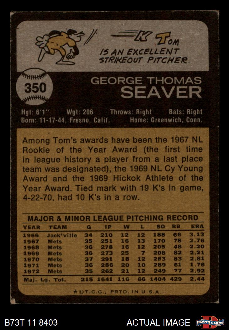 1973 Topps #350 Tom Seaver 3 - VG