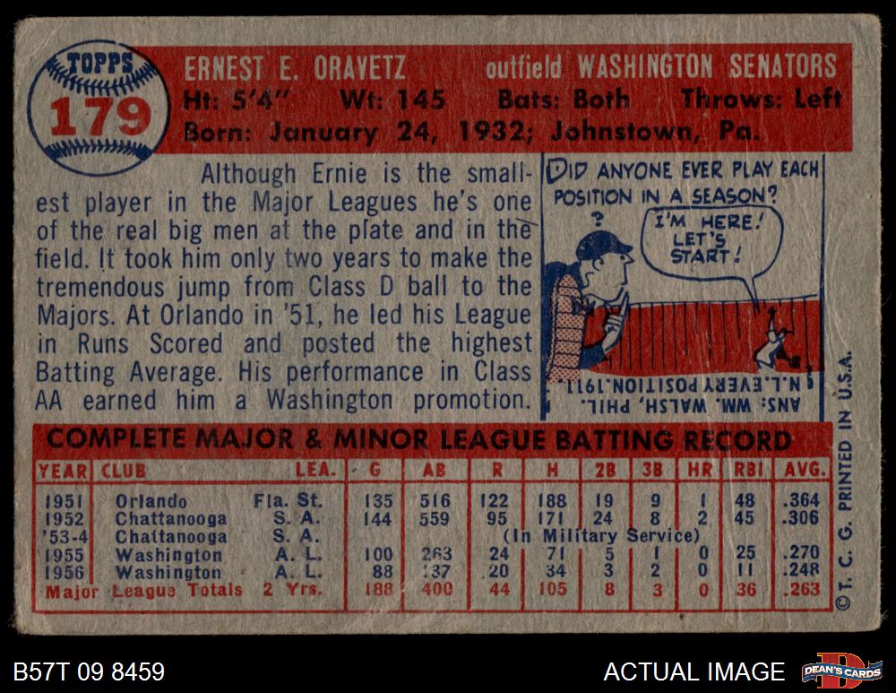 1957 Topps #179 Ernie Oravetz 1.5 - FAIR