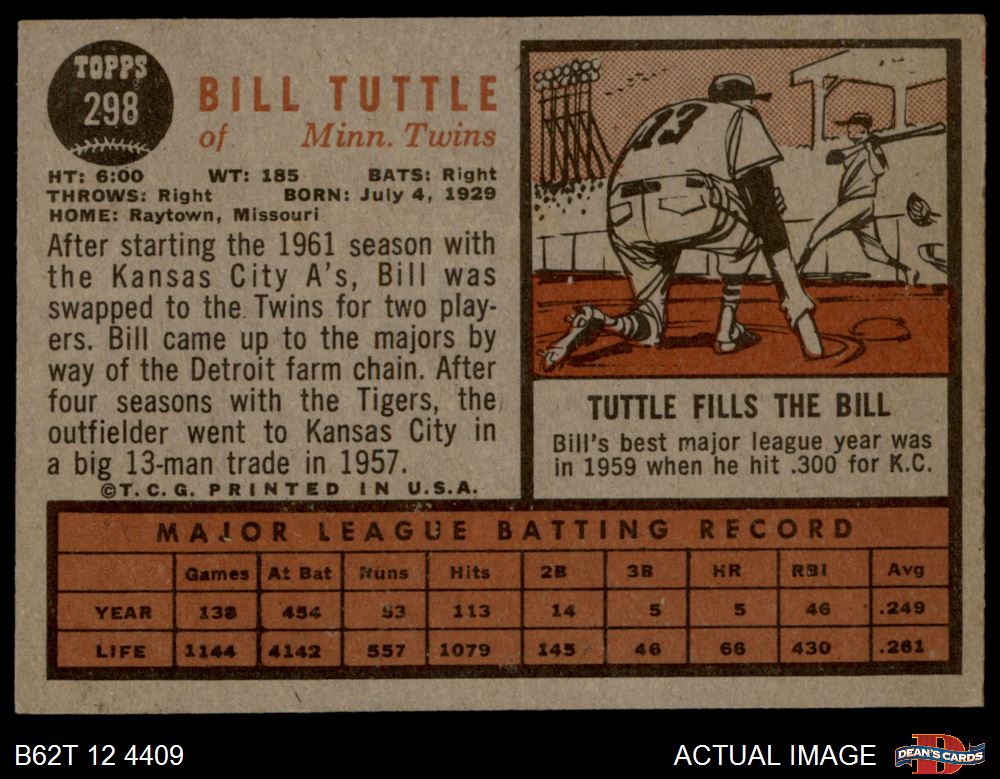1962 Topps #298 Bill Tuttle Front Thumbnail