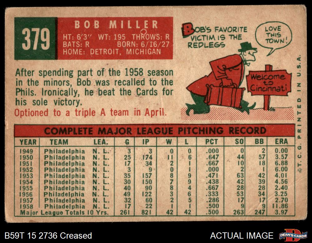 1959 Topps #379 Bob Miller 2 - GOOD
