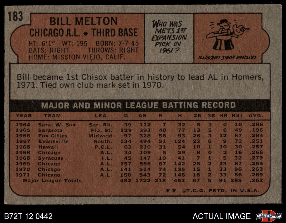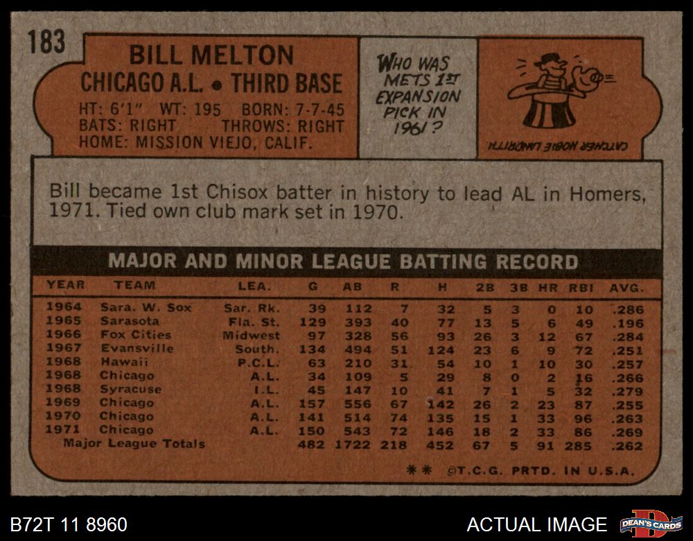 1972 Topps #183 Bill Melton 4 - VG/EX