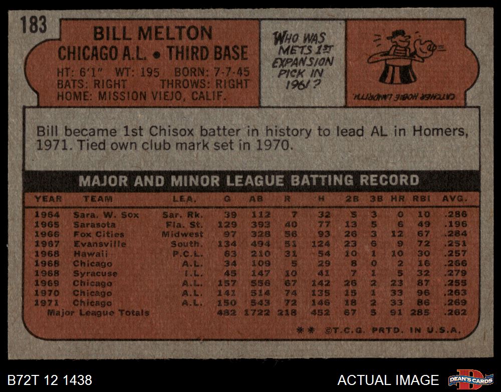 1972 Topps #183 Bill Melton 5 - EX