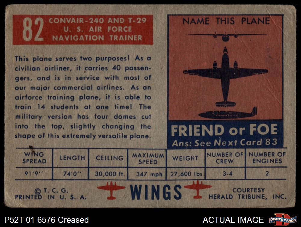 1952 Topps Wings #82  Convair 240 Front Thumbnail