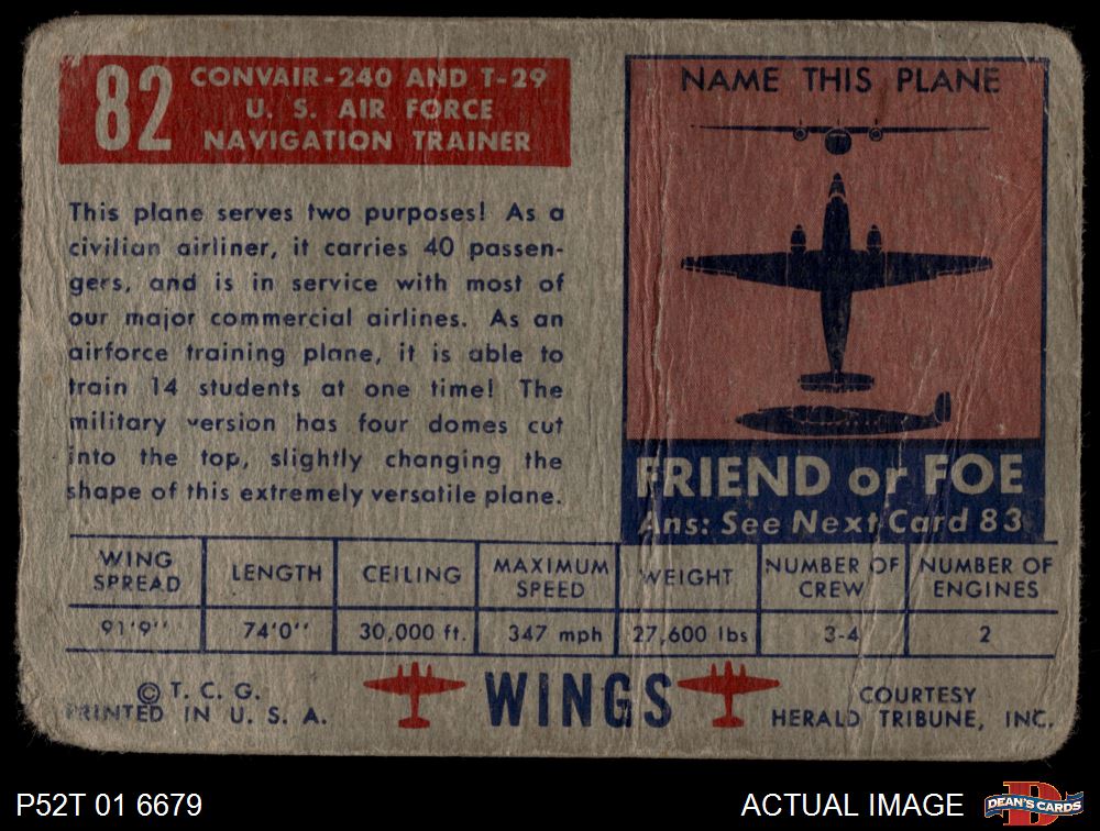 1952 Topps Wings #82 Convair 240
