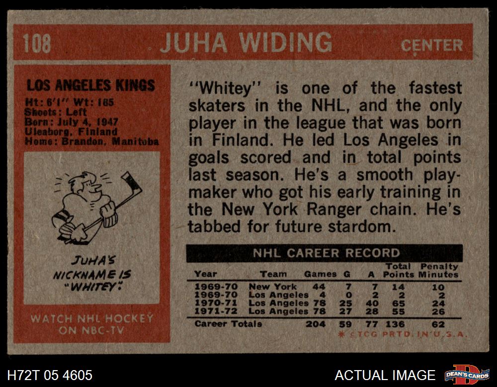 1972 Topps #108 Juha Widing