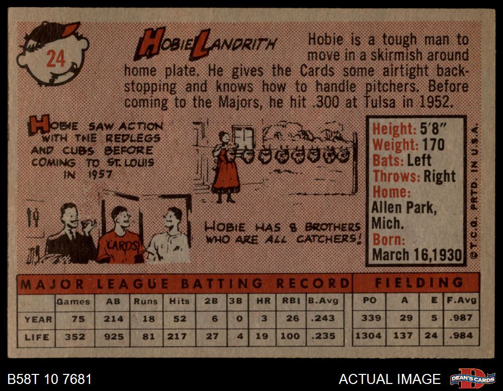 1958 Topps #24 WN Hobie Landrith 4 - VG/EX