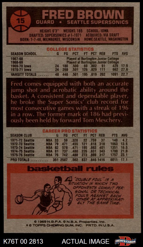 1976 Topps #15 Fred Brown 6 - EX/MT