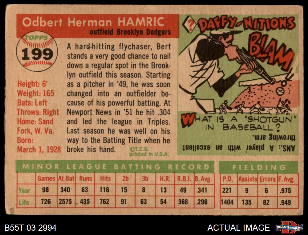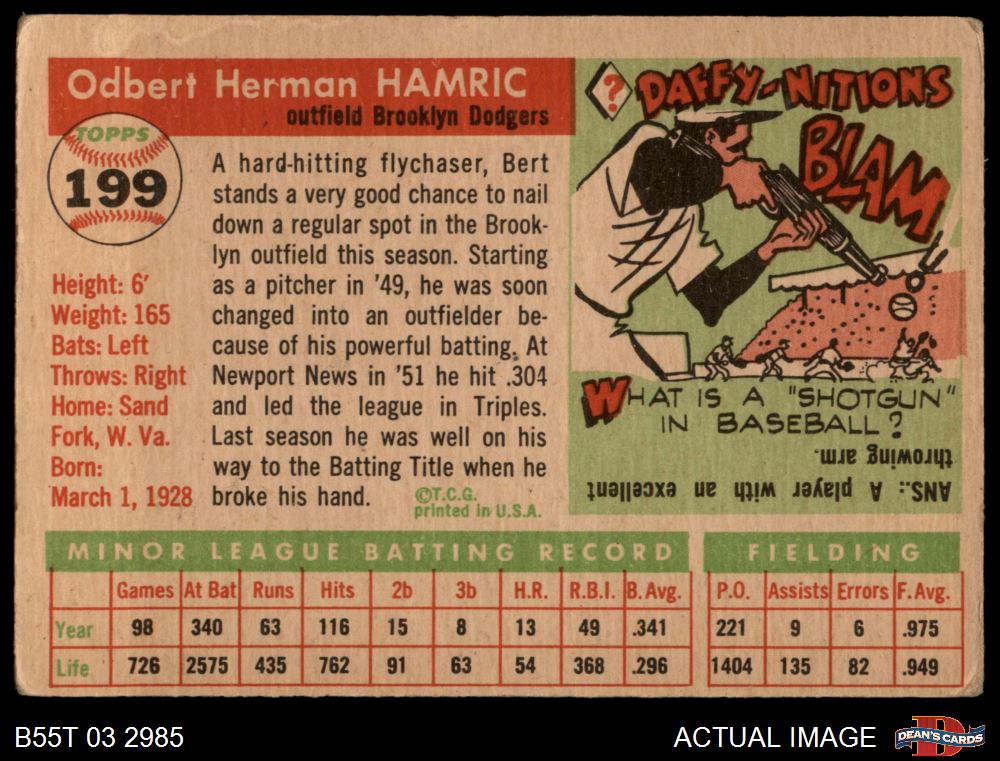 1955 Topps #199 Bert Hamric 2 - GOOD