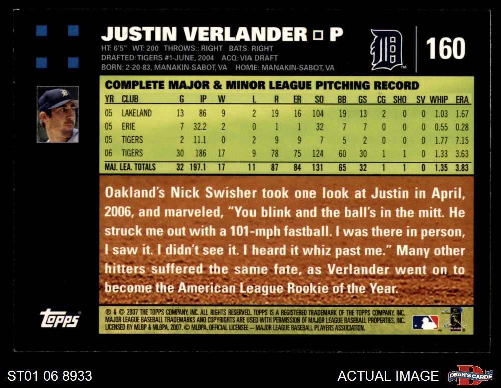 2007 Topps #160 Justin Verlander 8 - NM/MT