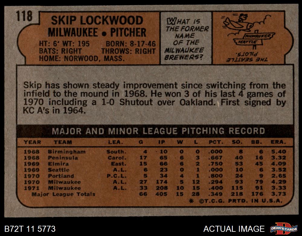 1972 Topps #118 Skip Lockwood 4 - VG/EX