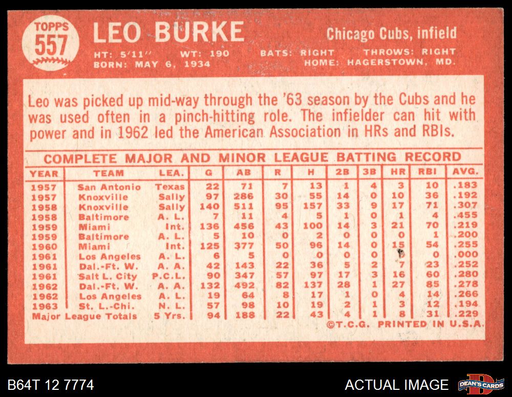 1964 Topps #557 Leo Burke 5 - EX