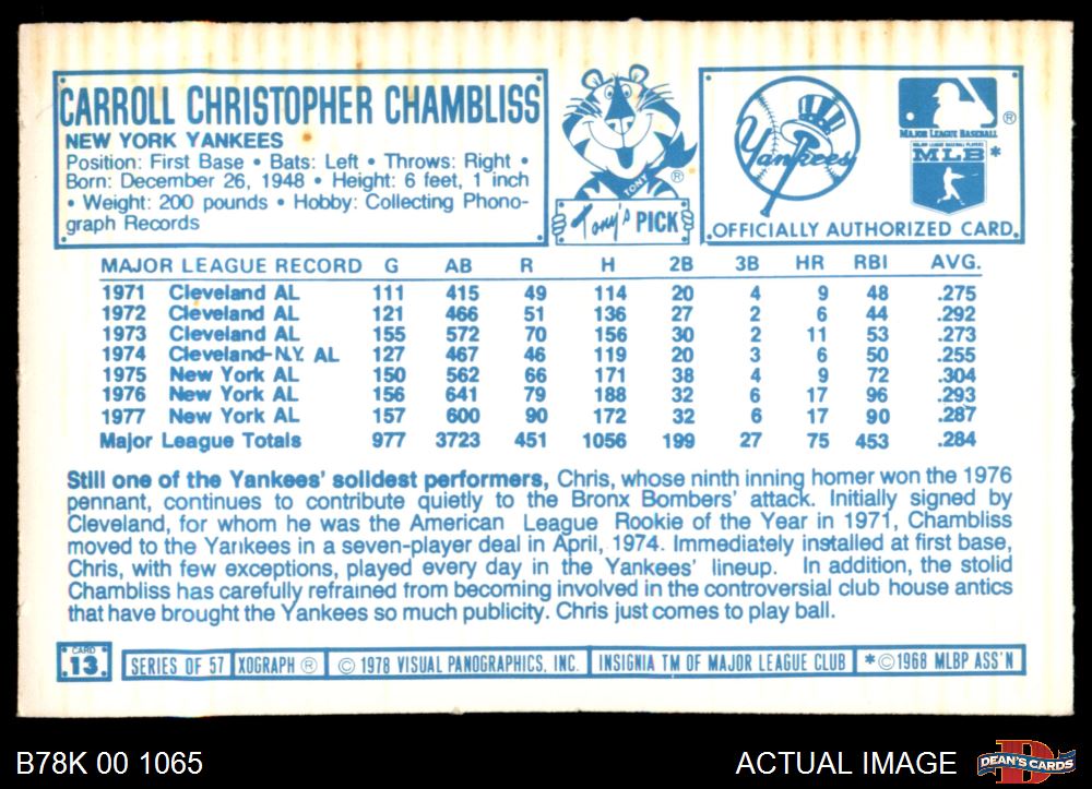 1978 Kellogg's #13 Chris Chambliss 2 - GOOD