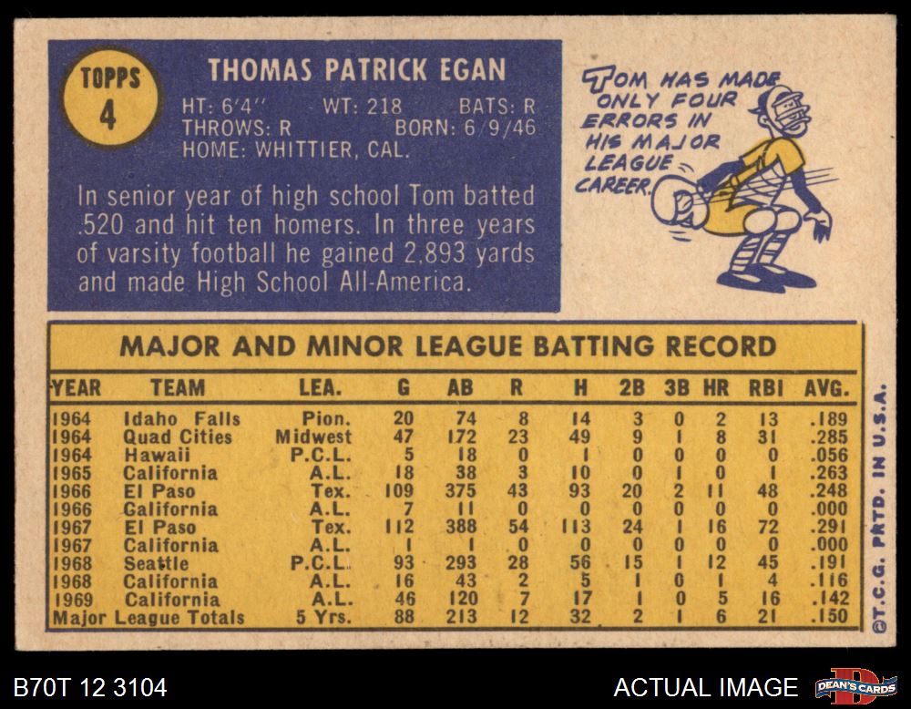 1970 Topps #4 Tom Egan 4.5 - VG/EX+