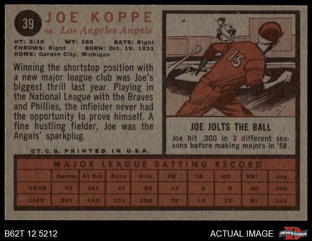 1962 Topps #39 Joe Koppe 5.5 - EX+