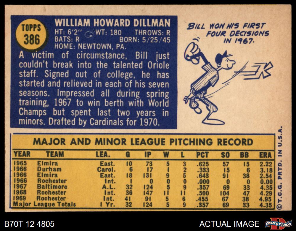 1970 Topps #386 Bill Dillman 6 - EX/MT