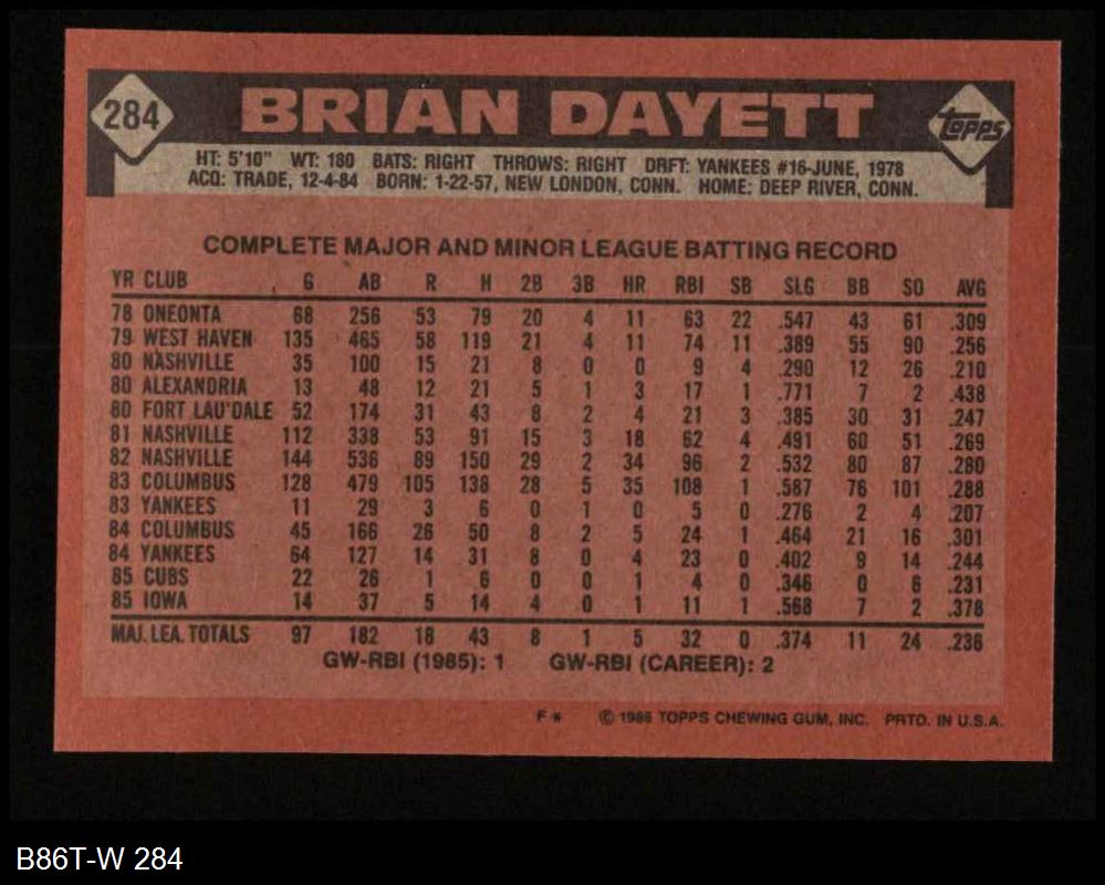 1986 Topps #284 Brian Dayett