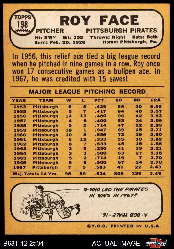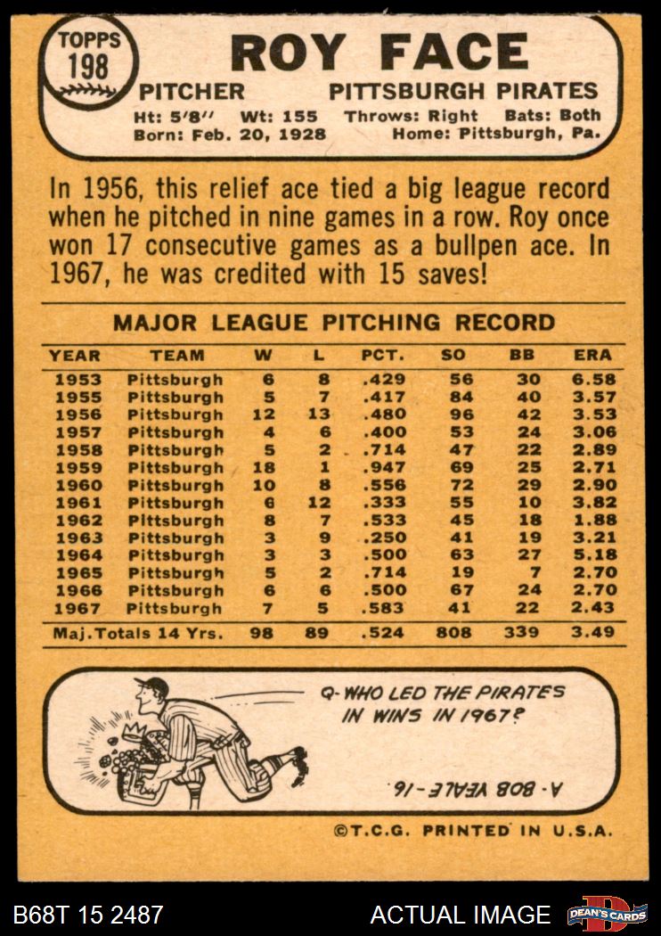 1968 Topps Baseball Cards (12,896 available)1968 Topps Pirates (643 available)