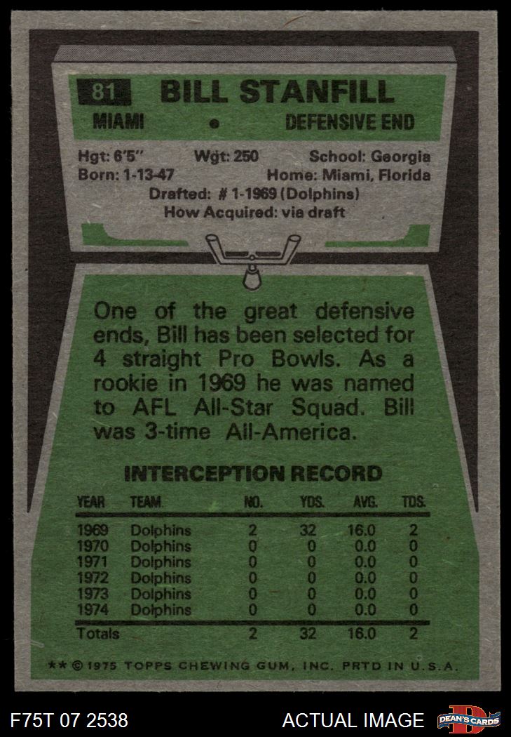 1975 Topps #81 Bill Stanfill