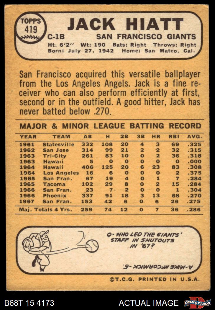 1968 Topps #419 Jack Hiatt 4 - VG/EX