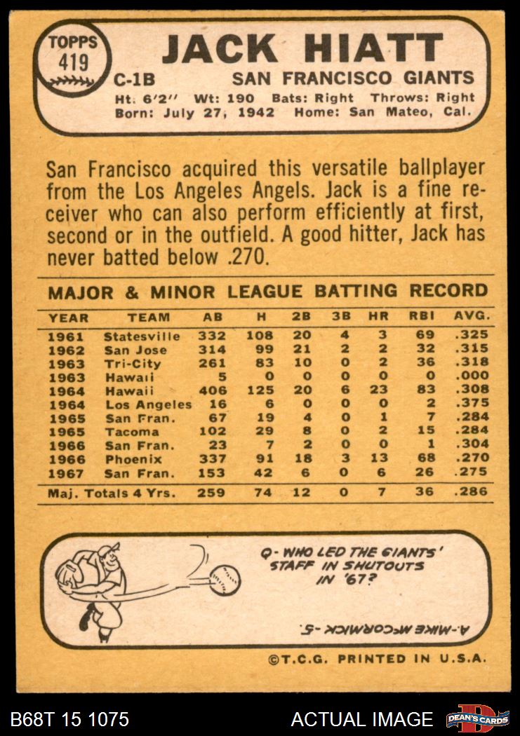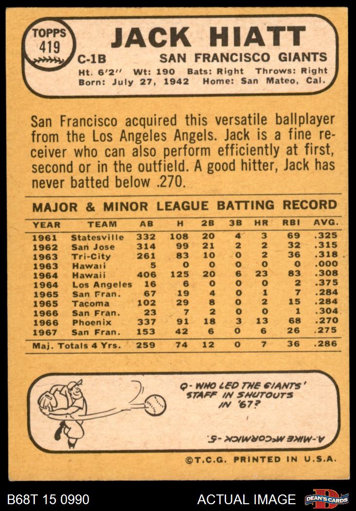 1968 Topps #419 Jack Hiatt 6 - EX/MT
