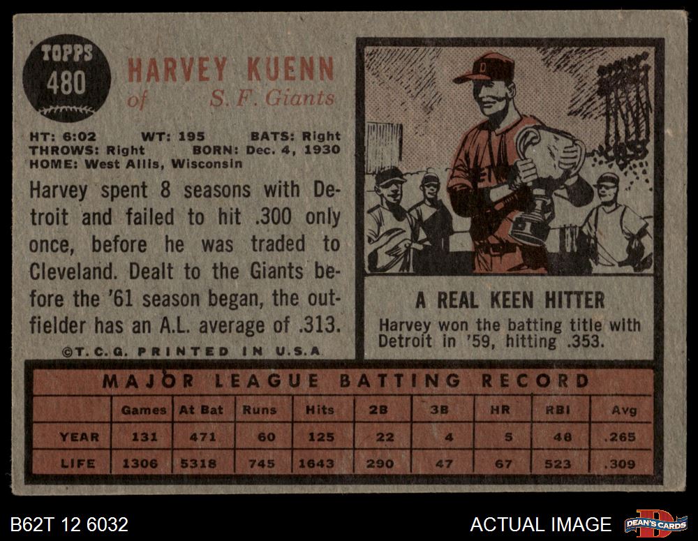 1962 Topps #480 Harvey Kuenn 2.5 - GD+