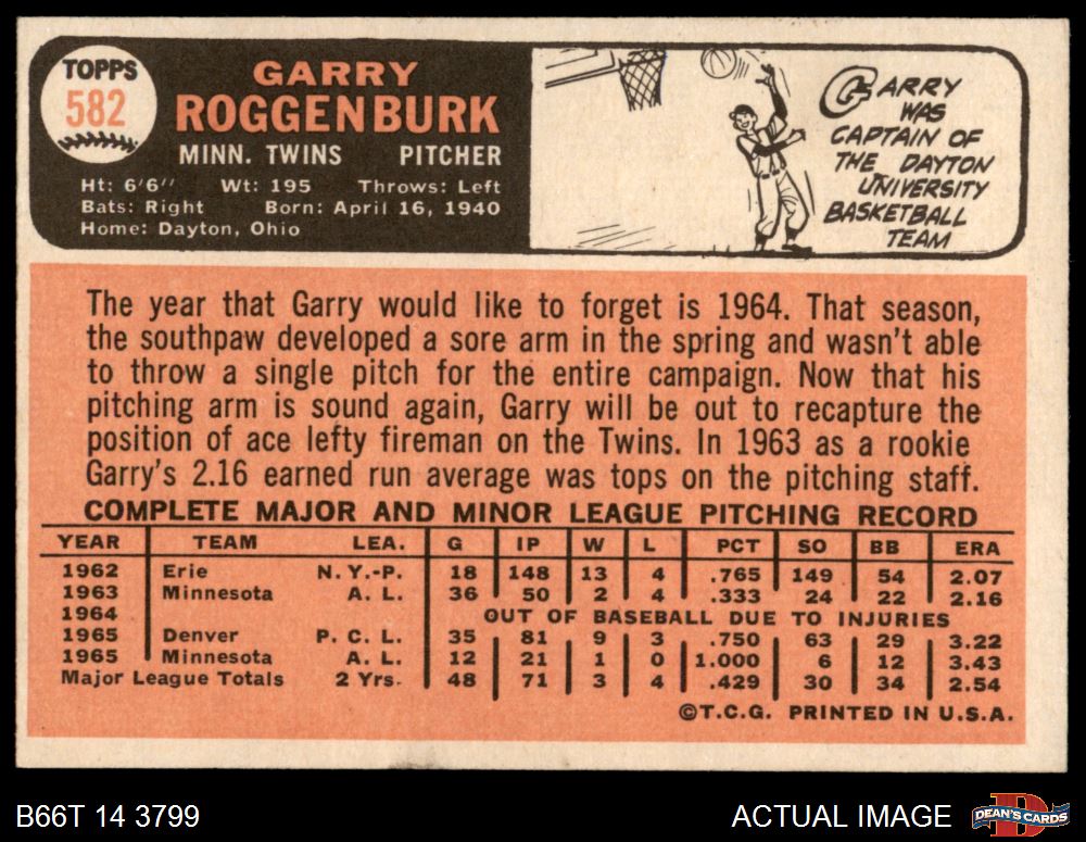 1966 Topps #582 xCIR Garry Roggenburk 5 - EX