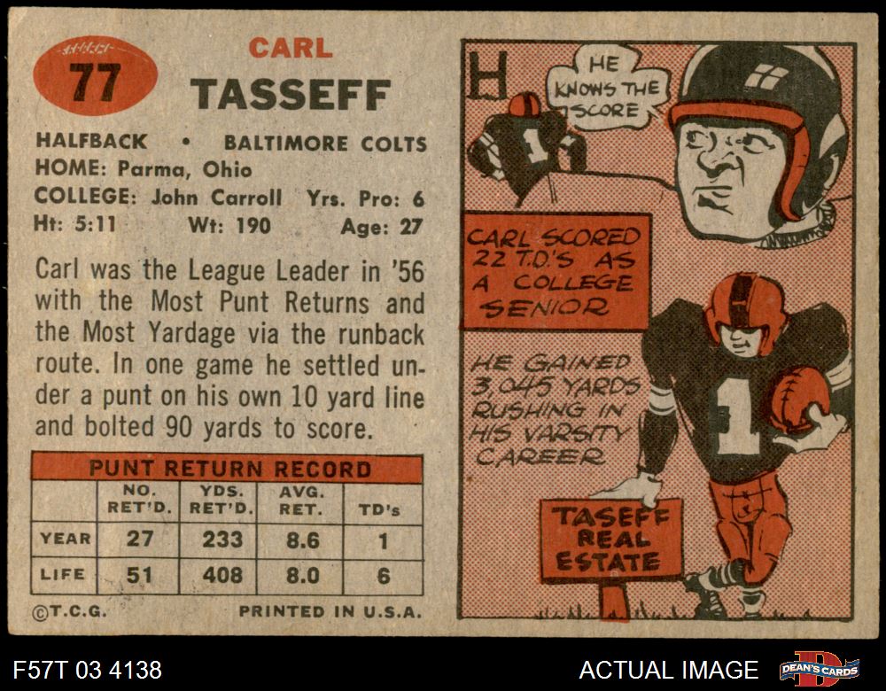 1957 Topps #77 Carl Tasseff 4.5 - VG/EX+